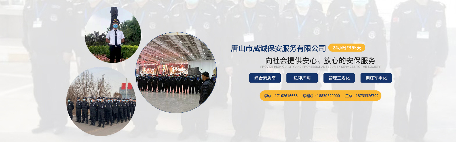以專創(chuàng)業(yè),以信致遠(yuǎn)。威誠保安服務(wù)有限公司將珍視各利益相關(guān)方的信賴,以堅實(shí)的工作績效協(xié)助客戶實(shí)現(xiàn)安心、有效、和諧的運(yùn)營,以嚴(yán)格的管理為員工職業(yè)發(fā)展提供平臺支持,成為法治和諧社會的正能量,成就威誠品牌。
